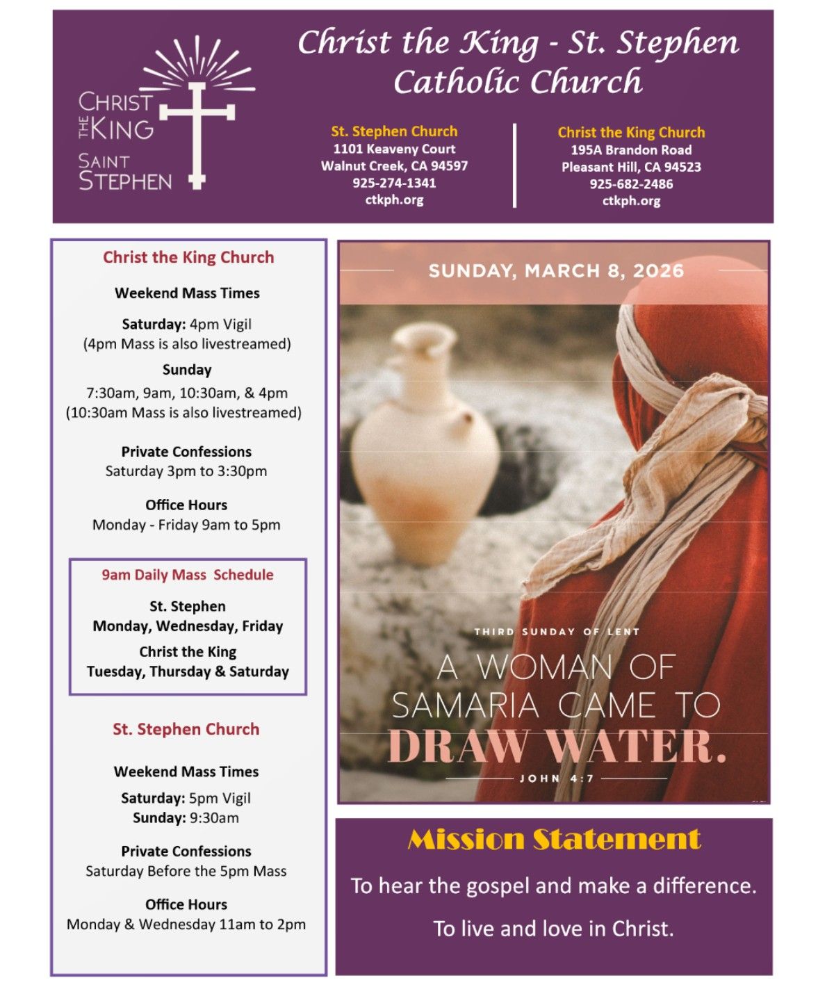 Please note: Friday, March 20, we will have Stations of Cross at 6pm